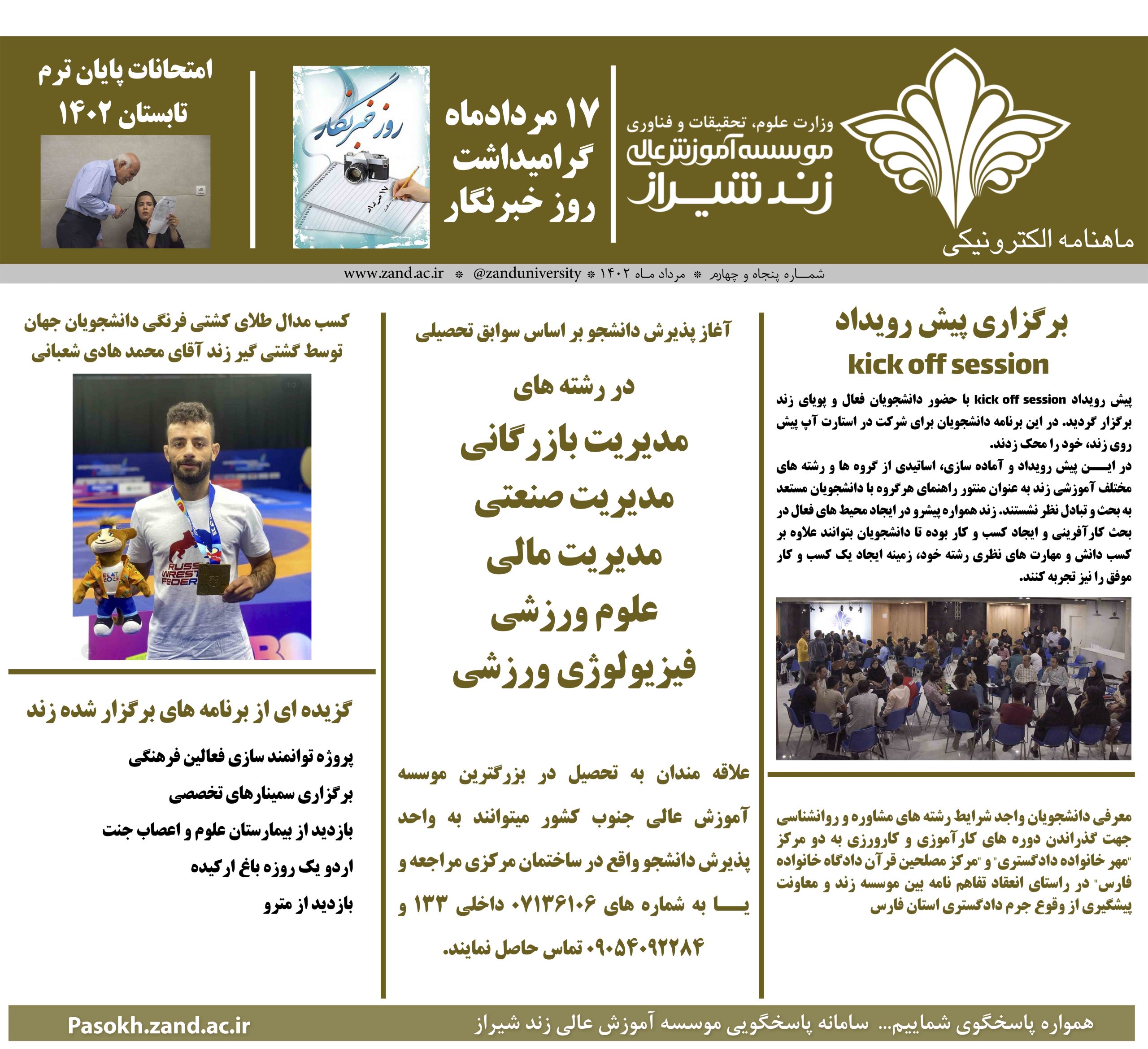 سامانه مجازی موسسه آموزش عالی زند شیراز