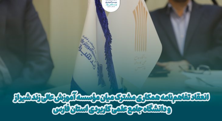 انعقاد تفاهمنامه همکاری مشترک میان مؤسسه آموزش عالی زند شیراز و دانشگاه جامع علمی کاربردی استان فارس در راستای گسترش
